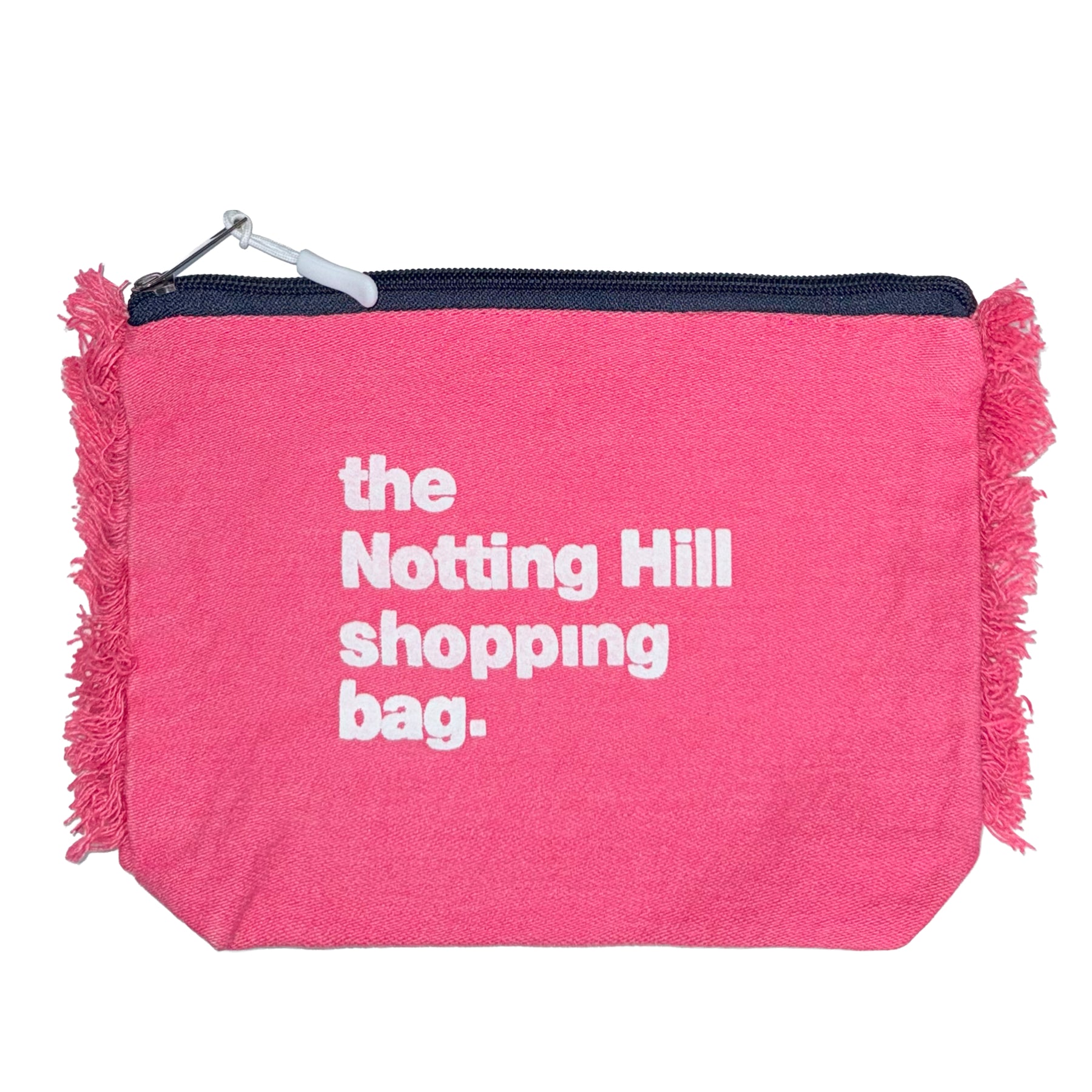 Keep your essentials organised in style with our Notting Hill Pouch Bundle of Three. Each set includes three compact zip pouches in playful colours — pink, green and ice navy — all made from soft, durable cotton with fringed edges and our iconic Notting Hill Shopping Bag logo.