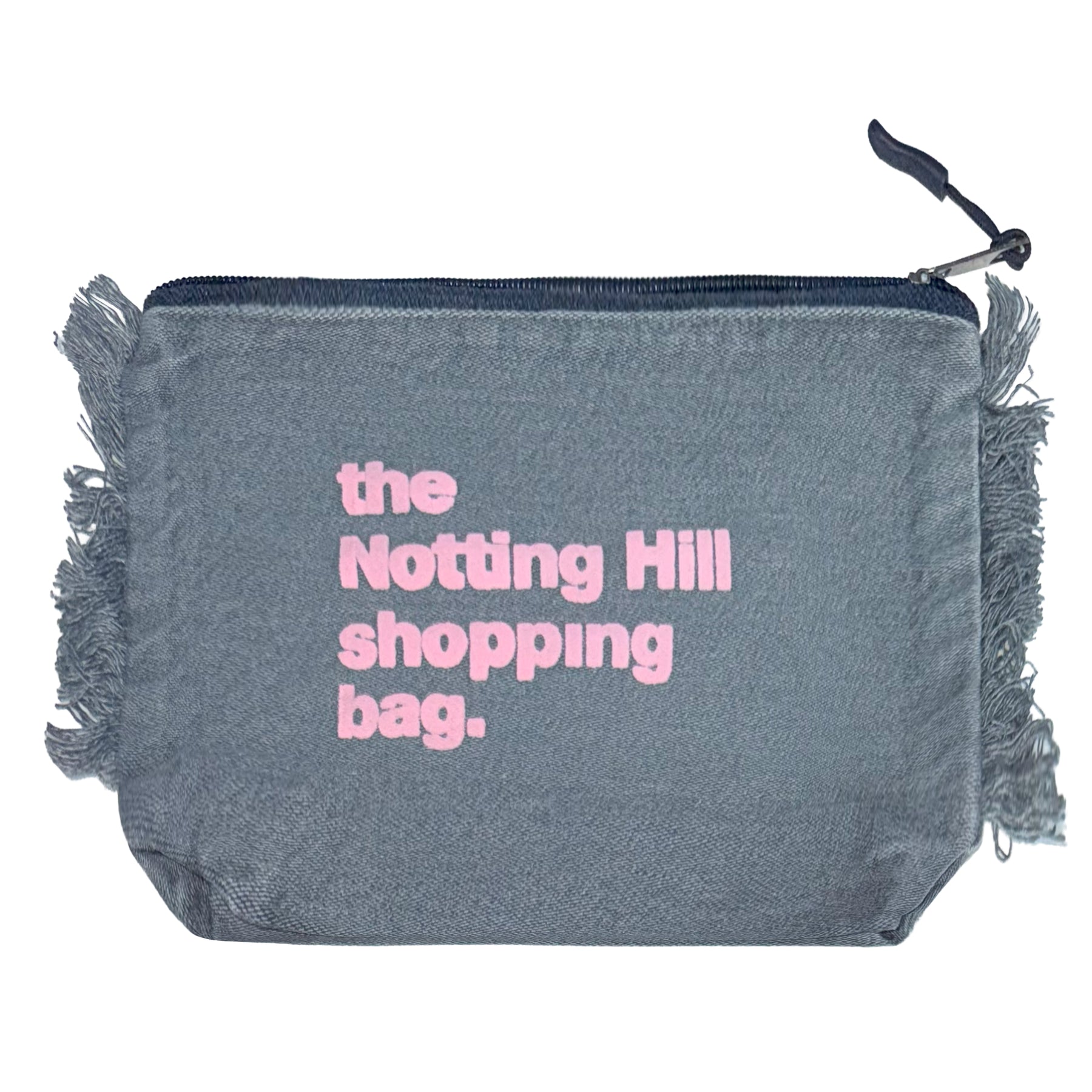 Keep your essentials organised in style with our Notting Hill Pouch Bundle of Three. Each set includes three compact zip pouches in playful colours — grey, red, and brown — all made from soft, durable cotton with fringed edges and our iconic Notting Hill Shopping Bag logo.