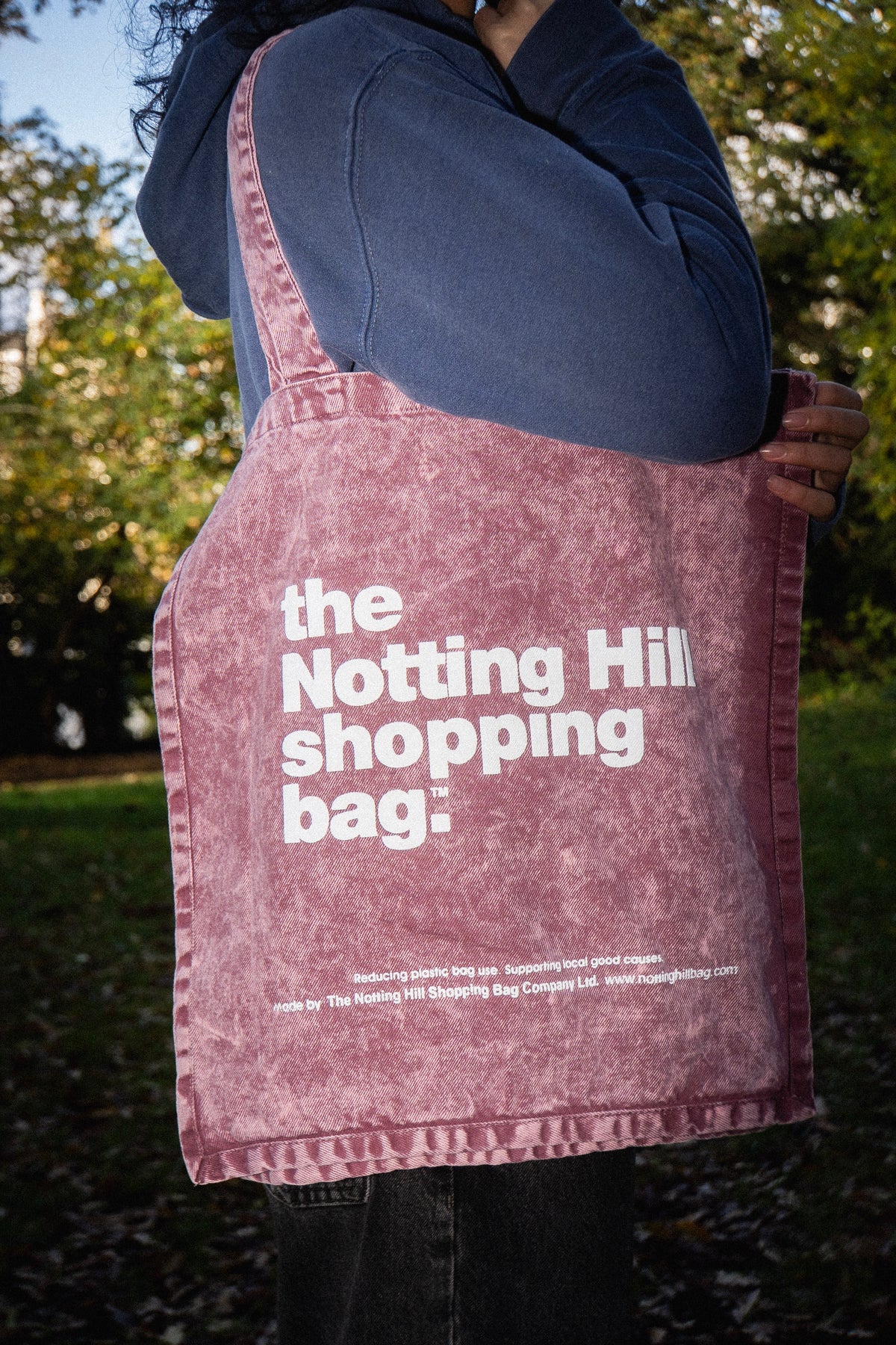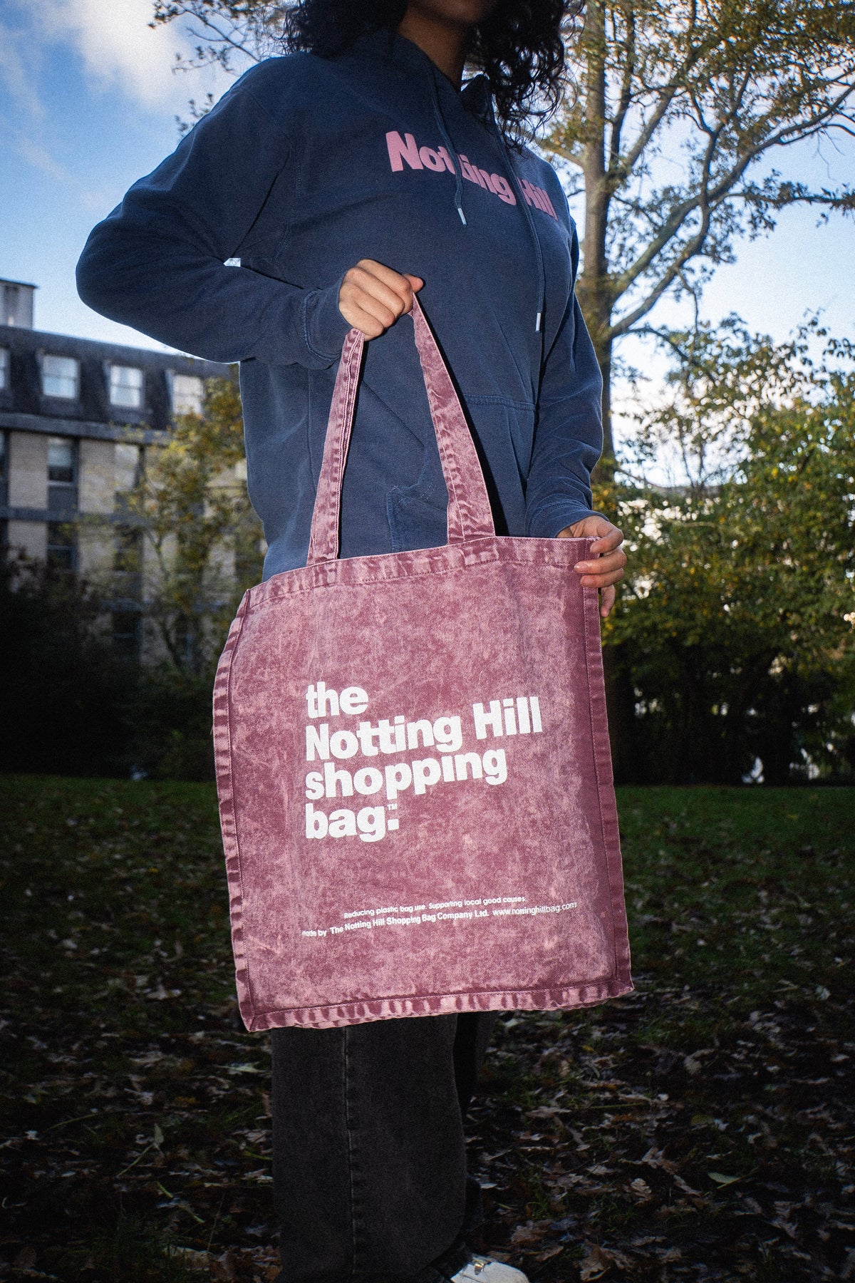 LIMITED EDITION — our limited edition oversized Fuschia Flock Shopping Bag is crafted from durable denim with the iconic Notting Hill Shopping Bag white logo boldly printed on both sides. Perfect for everyday errands or weekend strolls through the market, this timeless tote blends practicality with urban charm. Each bag is hand-printed in London, slight colour variations may occur.