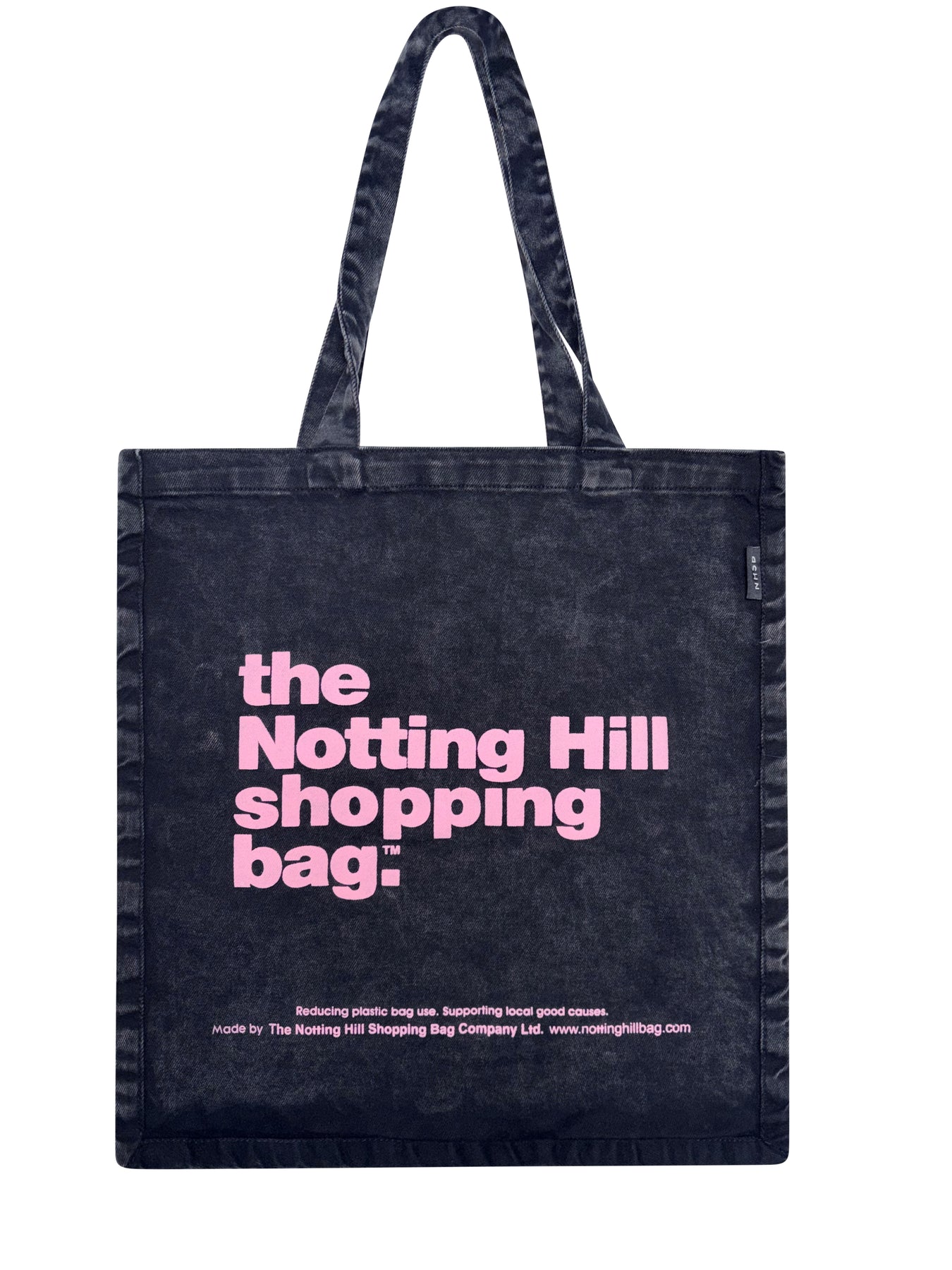 LIMITED EDITION — our limited edition oversized Deep Ocean Shopping Bag is crafted from durable denim with the iconic Notting Hill Shopping Bag pink logo boldly printed on both sides. Perfect for everyday errands or weekend strolls through the market, this timeless tote blends practicality with urban charm. Each bag is hand-printed in London, slight colour variations may occur.